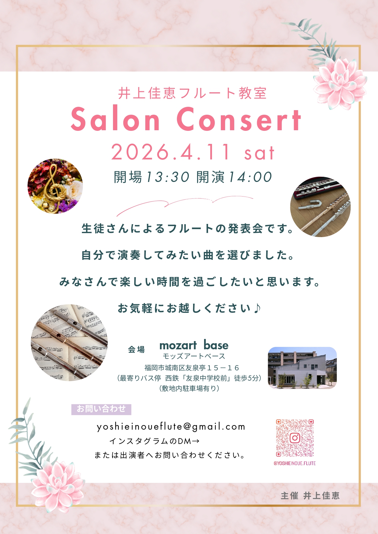 2026/4/11(土)井上佳恵フルート教室 サロンコンサート